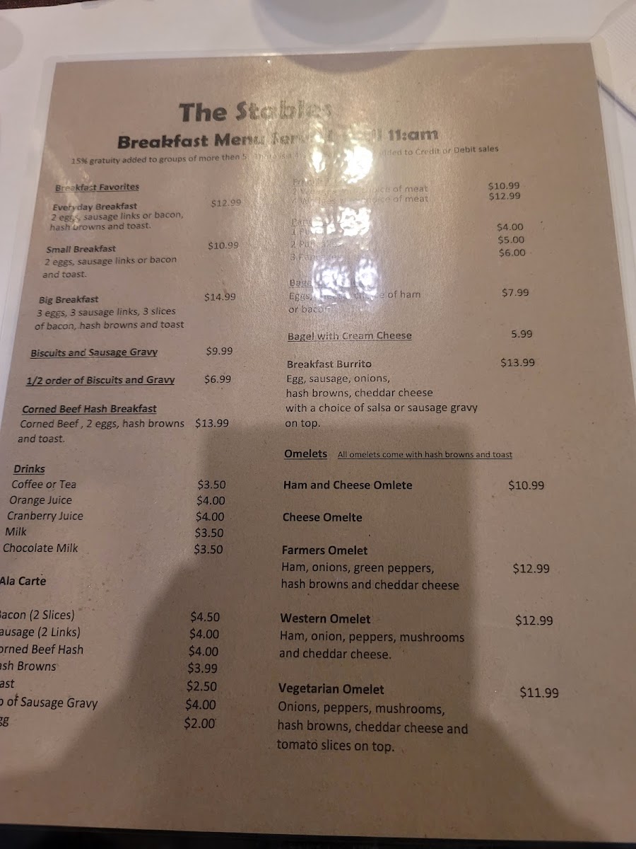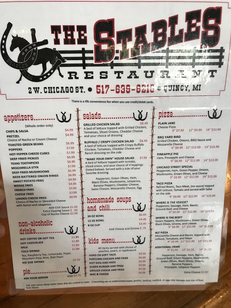 Welcome to Stables, a hidden gem located at 2 W Chicago St, Quincy, MI. This delightful eatery offers a menu that caters to all breakfast lovers and fans of hearty American classics. Start your day with the Everyday Breakfast for just $12.99, or indulge in the Big Breakfast if you’re feeling extra hungry at $14.99. For a twist, their Fried Bologna Sandwich has garnered rave reviews, described as "heaven in my mouth."